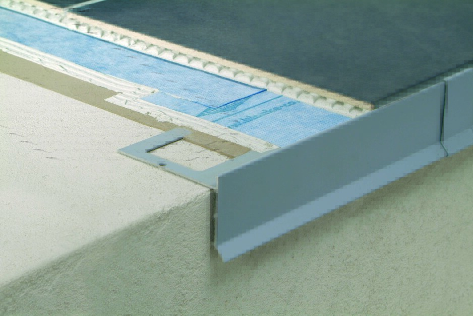 Es wird im Randbereich auf eienr fertigen Gefällefläche verlegt. Profile für Fliesen auf Terrassen u.