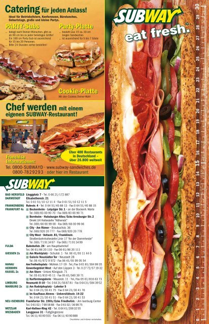 Subway Cookie Platten mit oder Cookies. Bestellen Sie hier aus dem Menü. Lieferung möglich ab Euro Mindestbestellwert kostenlos im Umkreis von Landsberg am Lech (siehe Liefergebiet ). Ohne Mindestbestellwert oder außerhalb. DISCLAIMER: Menu items and prices are subject to change.